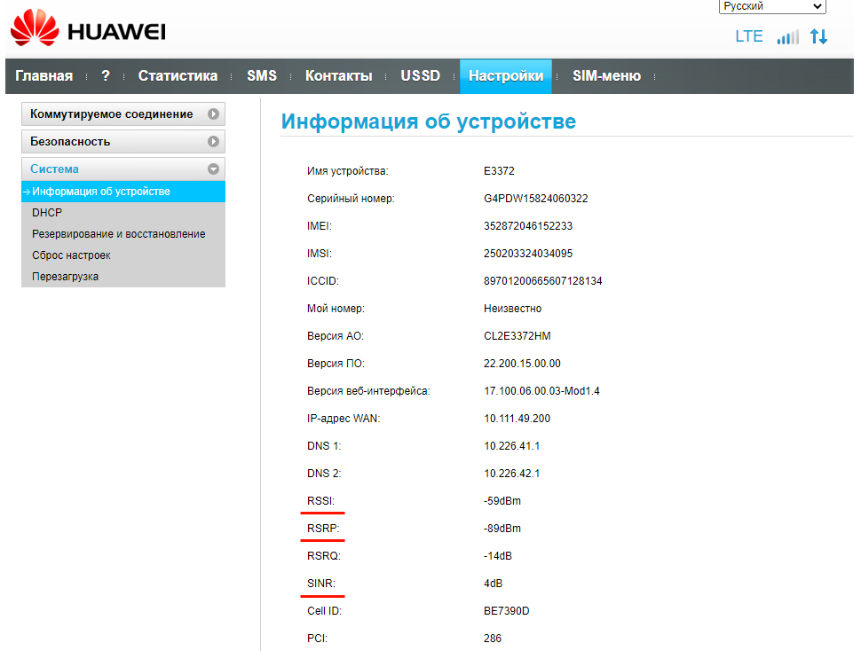 RSSI (Received Signal Strength Indicator) - параметр определяющий мoщность принимаемoго cигнала. Минимально возможный показатель RSSI, при котором LTE будет работать составляет -85ДБ. Нормальным же уровнем будет показания в -30-60ДБ (чем ближе к 0, тем лучше).