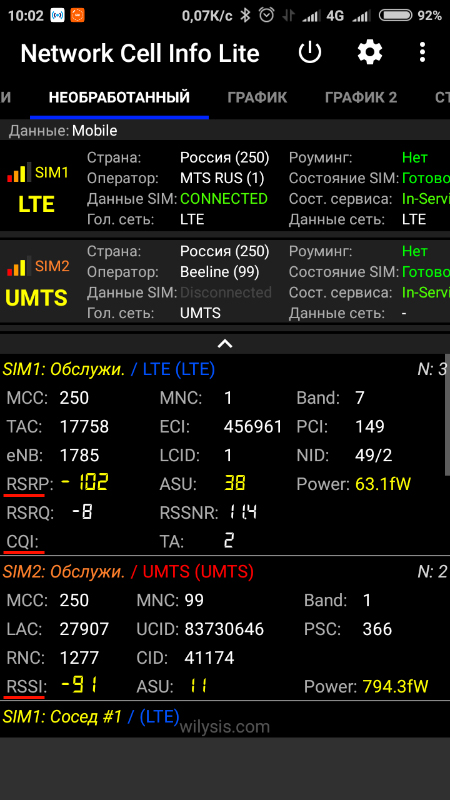 Определение параметров сигнала сотовых операторов