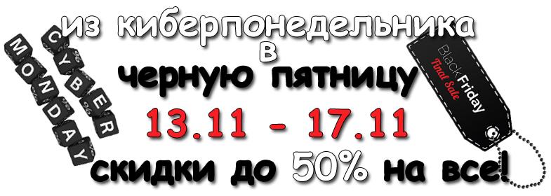 Начинаем с кибер понедельника 13-го и заканчиваем черной пятницей 17-го. Скидки до 50%.